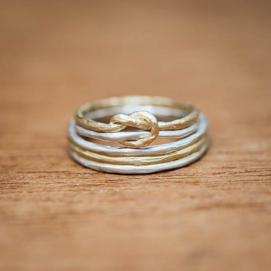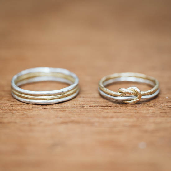 K18とブリタニアシルバー958を組み合わせた「えんむすび」リングです。ハンドメイドの温もりが感じられる仕上がりになっています。
